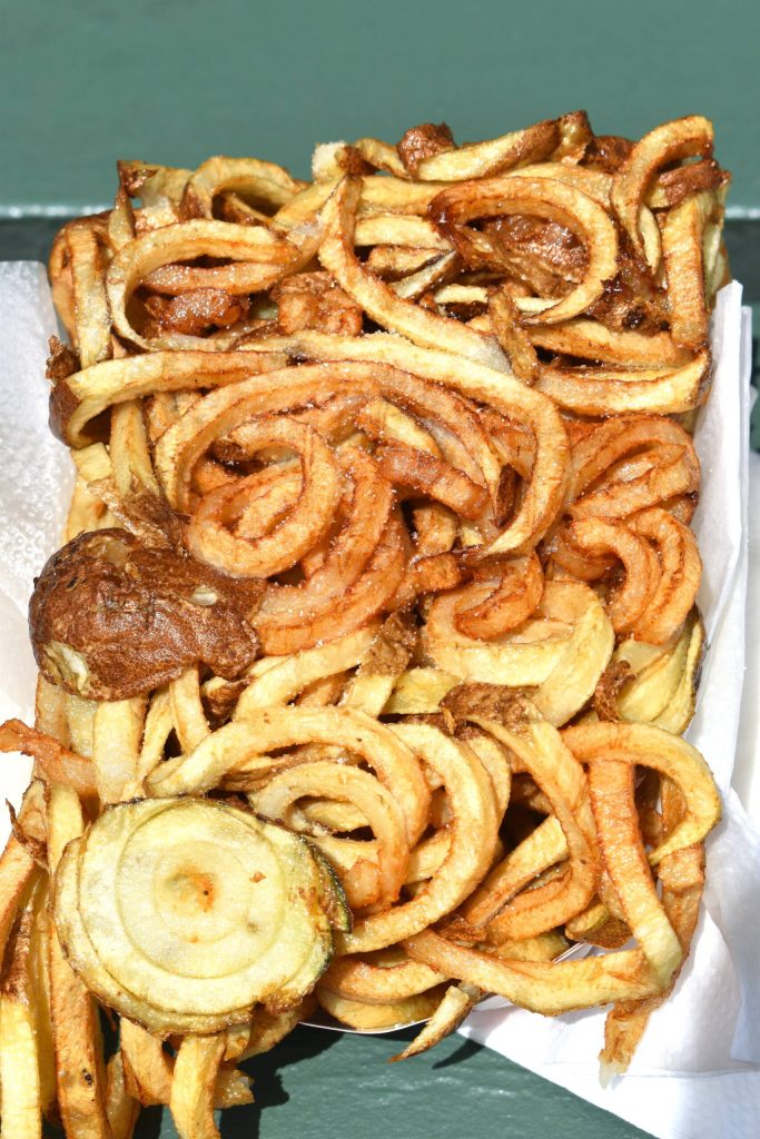 Take for instance the massive brick of curly fries one vendor was selling. Forget having the simple treat as a side, it’s the whole meal. If a person eats a large fry at a fast food restaurant and says they’re full afterward, this massive portion of potatoes laughs at that man. Why? The person would not have even made a dent in the gigantic offering of curly fries that seem like they’d be able to — with just potatoes and oil — feed a small family. At $14.15 for that size, you have to hunt to find a place that will serve that much food.