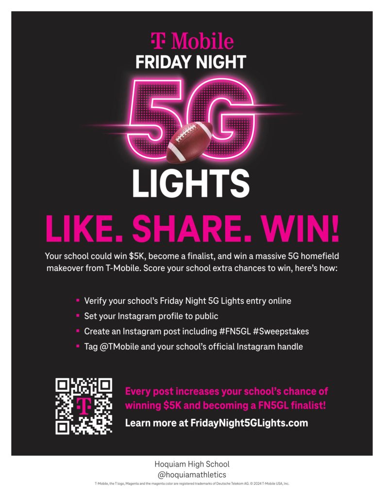 The Hoquiam High School athletics department is participating in the T-Mobile Friday Night 5G Lights sweepstakes program.