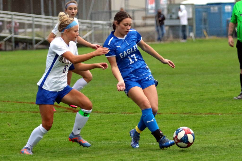 The Eagles used several give-and-go’s through the midfield before Echeverria fed Valentine, who took a touch past her defender and scored for a 2-0 lead.