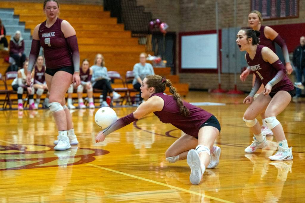 “The girls played well tonight in the first two sets. In the third set, they stopped talking and the wheels started to fall off the bus, but we were able to pull it together and get the win,” Monte head coach Cindy Wecker said. “Being that it was our last home match, we honored or seniors tonight. … This is an incredibly talented group of girls and even though I am sad that this was their last time on our home court, we still have a lot of volleyball left to play.”