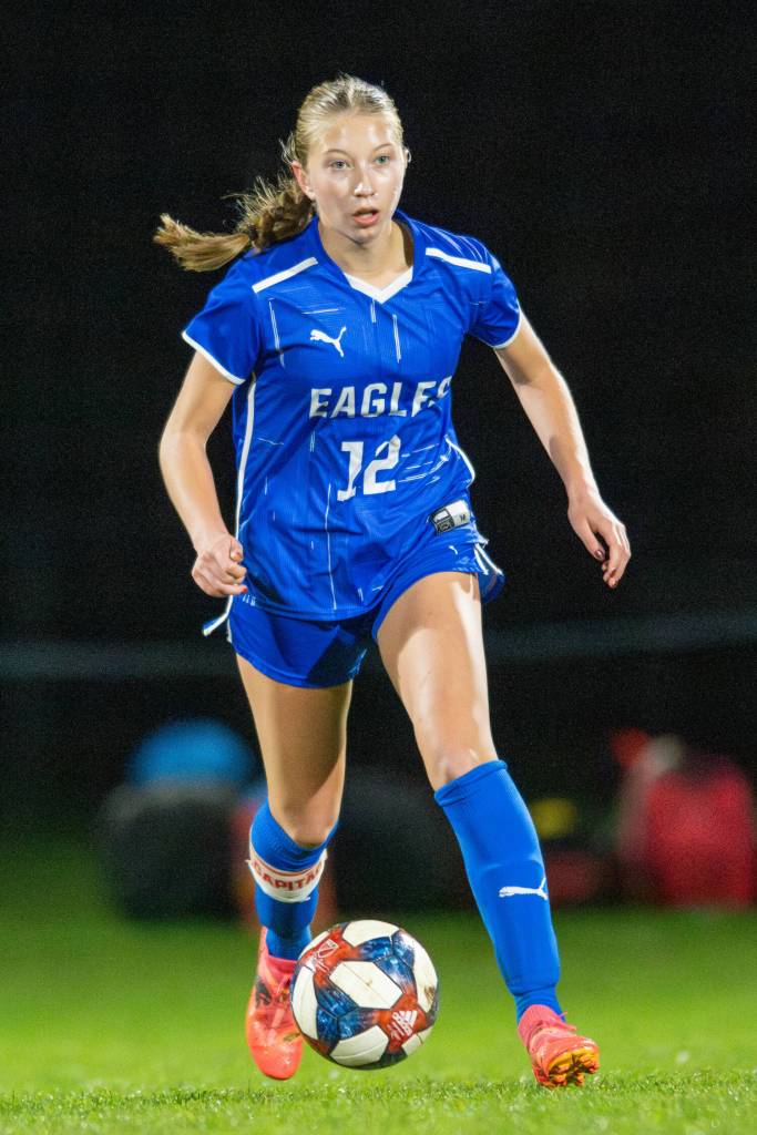 Elma senior forward Beta Valentine made history on Tuesday, scoring three goals to become the school’s all-time leading scorer in the Eagles’ 3-1 win over Columbia (White Salmon) in a 1A District 4 Tournament game in Elma.