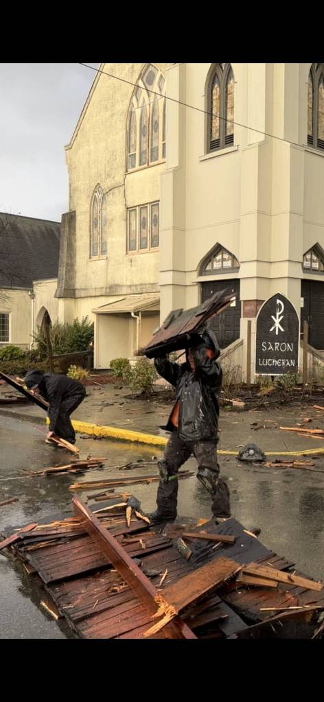 “I want to thank the Hoquiam Fire Department, the Grays Harbor PUD, the city of Hoquiam, Lupo Construction and Quigg Bros. Construction for helping us clean up and assess the damage,” de Beauchamp said. “Thank you to everyone in our community who have extended sentiments of support. We have been working with Lupo construction on important building maintenance for the last few years, so we are in a good position to figure out our next steps quickly and to resume normal church functions in the next few days. It will be expensive, but we are thankful that our community is coming together to support us.”