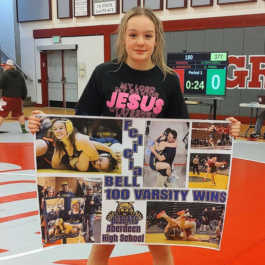 The victory was the 100th in Bell’s career, making her the lone Aberdeen girls wrestler to crack the century mark in wins.