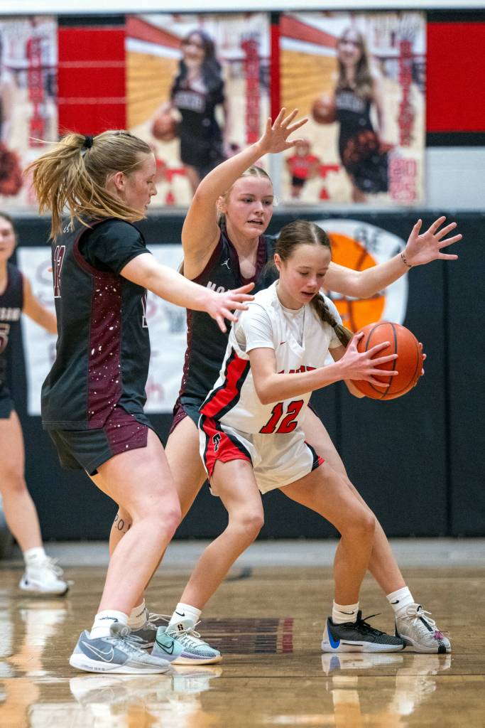 Sophomore guard Tieander Olson (19 points, 6 assists, 7 steals), junior forward Jillie Dalan (18 pts.) and senior Hazel Jones (10 pts., 5 reb.) each scored in double figures while senior forward Ava Schrader led Monte with seven rebounds.