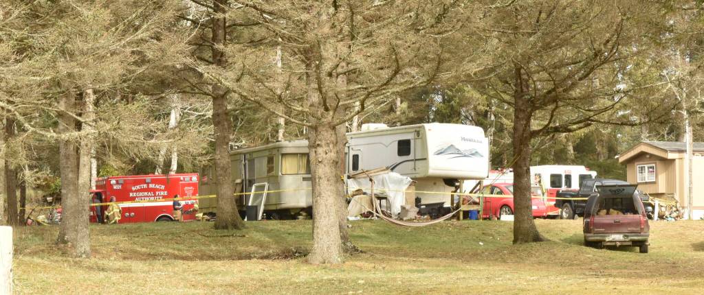 The South Beach Regional Fire Authority dispatched two fire engines, a tender and two ambulances to 3702 Tamarack Street just west of SR 105 in Grayland in response to a fifth wheel trailer fire late Thursday morning.