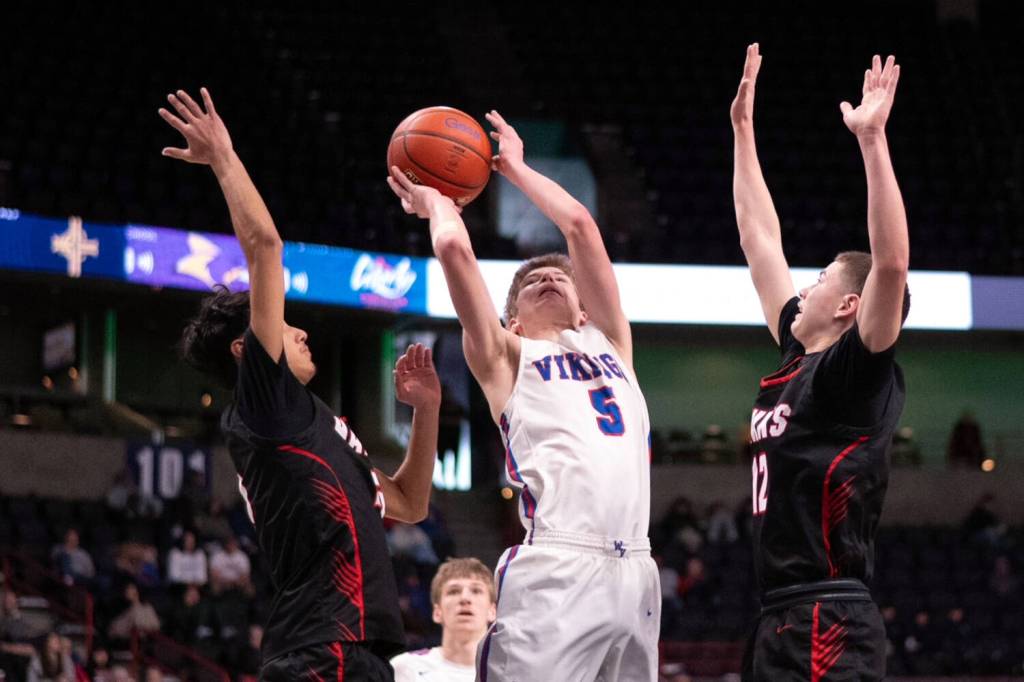 The third-seeded Vikings (23-4 overall) – which defeated the No. 6 Hawks (23-5) 59-51 in the second round of the state tourney on Feb. 28 – trailed 20-15 at the end of the first quarter as Heritage shooters went 5 for 5 from the 3-point line.