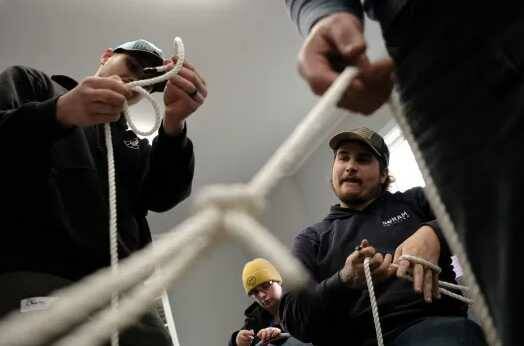 Under lead instructor and long-time fisherman Robert Maw’s careful watch, participants practiced a range of seafaring basics, including fiberglassing, welding, knot-tying, and net-mending. They also familiarized themselves with navigation protocols and various boats docked at the Port of Willapa Harbor.