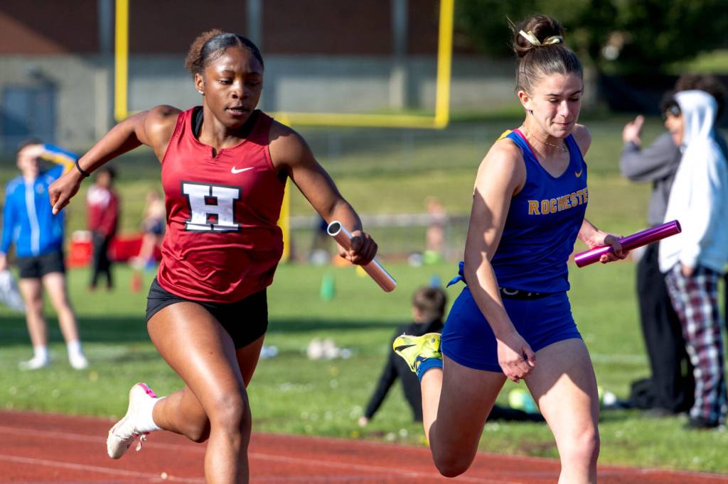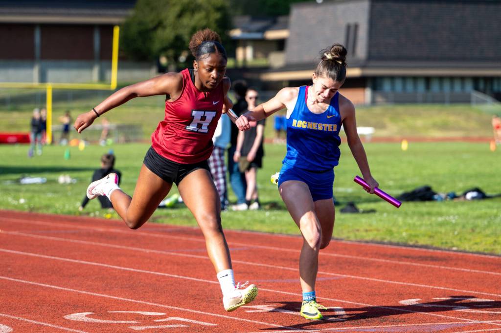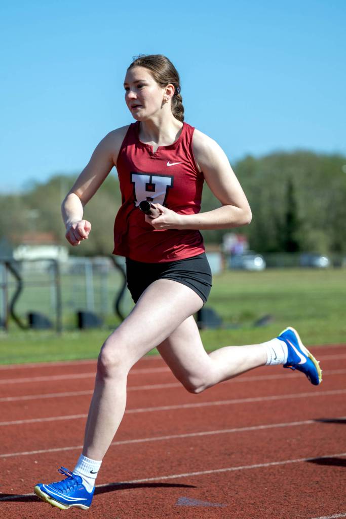 Hoquiam’s 4×100-meter relay team of Emily Brodhead, Brittany Alcala, Katlyn Brodhead and Burtenshaw placed first with a time of 52.97.