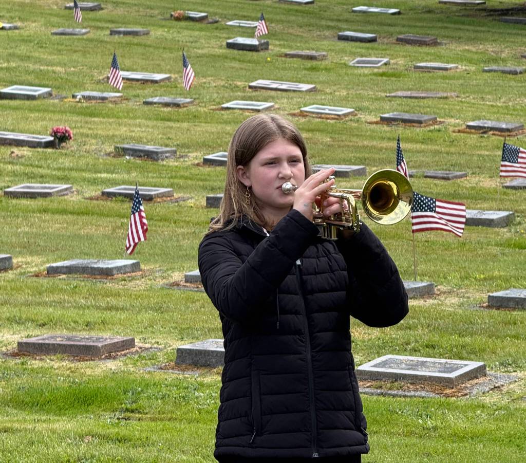 Vivienne Martindale, granddaughter of Sandra and David Bielski, played TAPS during the annual Memorial Day Service at Fern Hill Cemetery in Aberdeen on Monday. The cemetery has been in the Bielski family since 1924. David and Sandra have been hosting the service to honor our fallen veterans, since 1995.