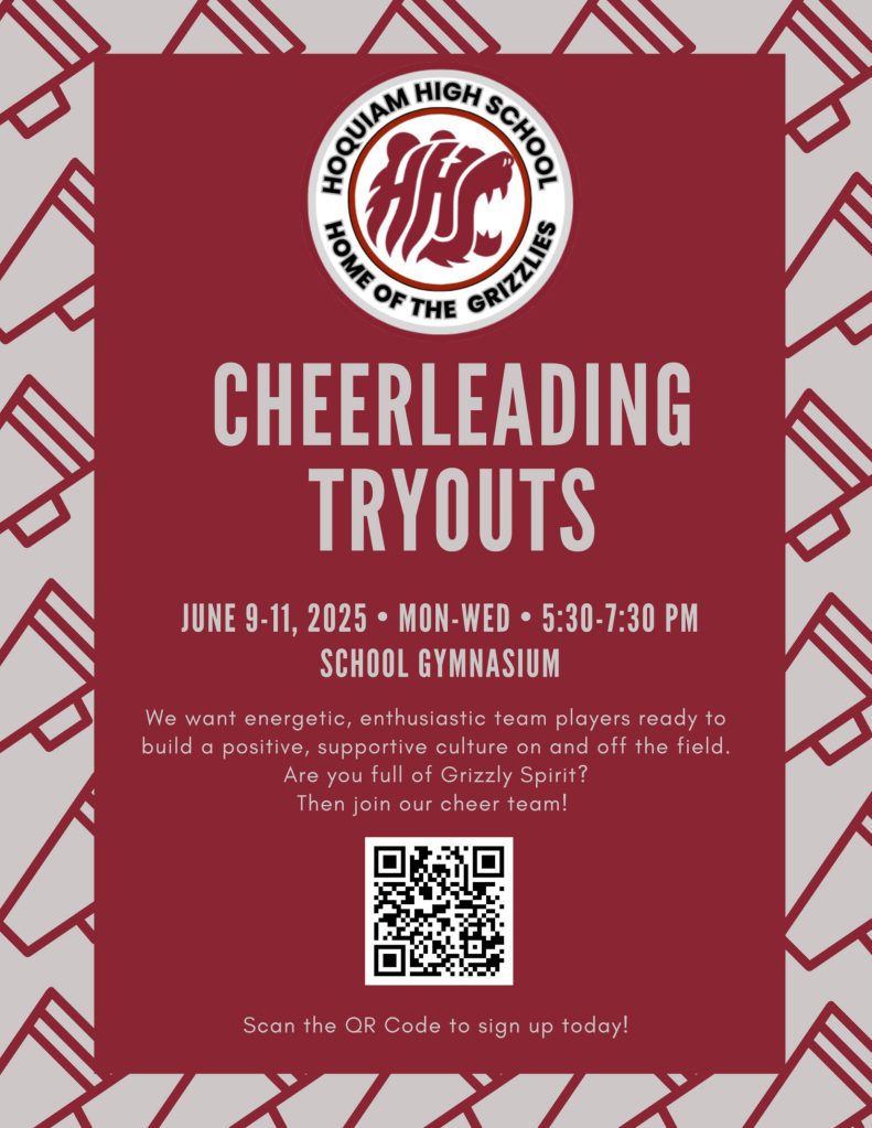 Hoquiam High School will host cheerleading tryouts from 5:30-7:30 p.m. June 9-11 at Hoquiam Square Garden.