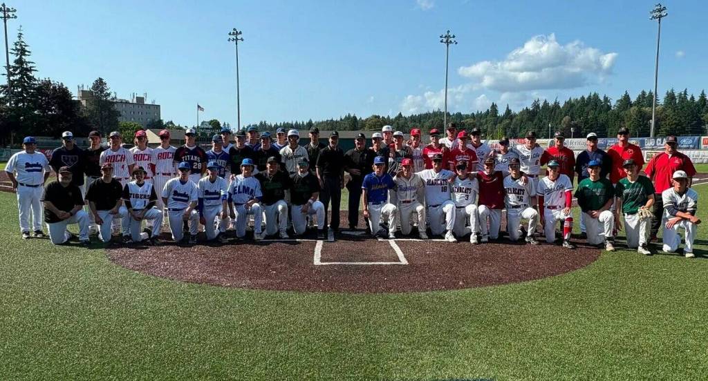 PHOTO COURTESY OF CASTLE ROCK BASEBALL Participants of the 47th annual Senior All-Star Game pose for a photo on Monday, June 4 at David Story Field in Longview.