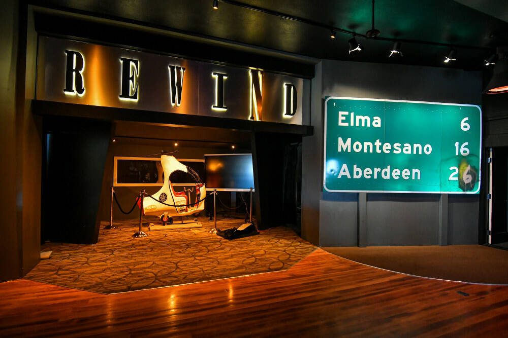 The historic highway sign listing Elma, Montesano and Aberdeen, immortalized by Kurt Cobain which now resides at The Music Project’s Kurt Cobain Tribute Gallery.