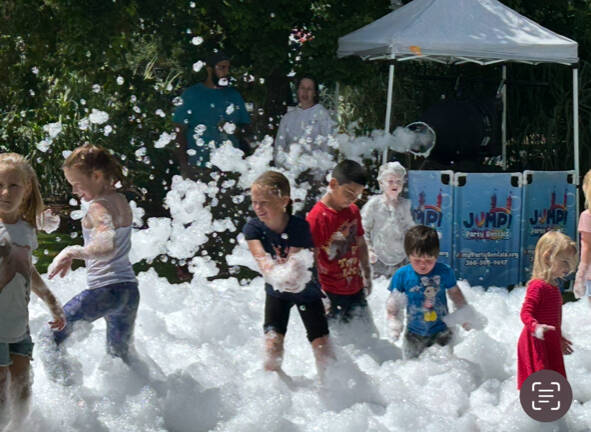 Children frolic in the foam at Montesano’s Kids Fest at Fleet Park on Saturday.
