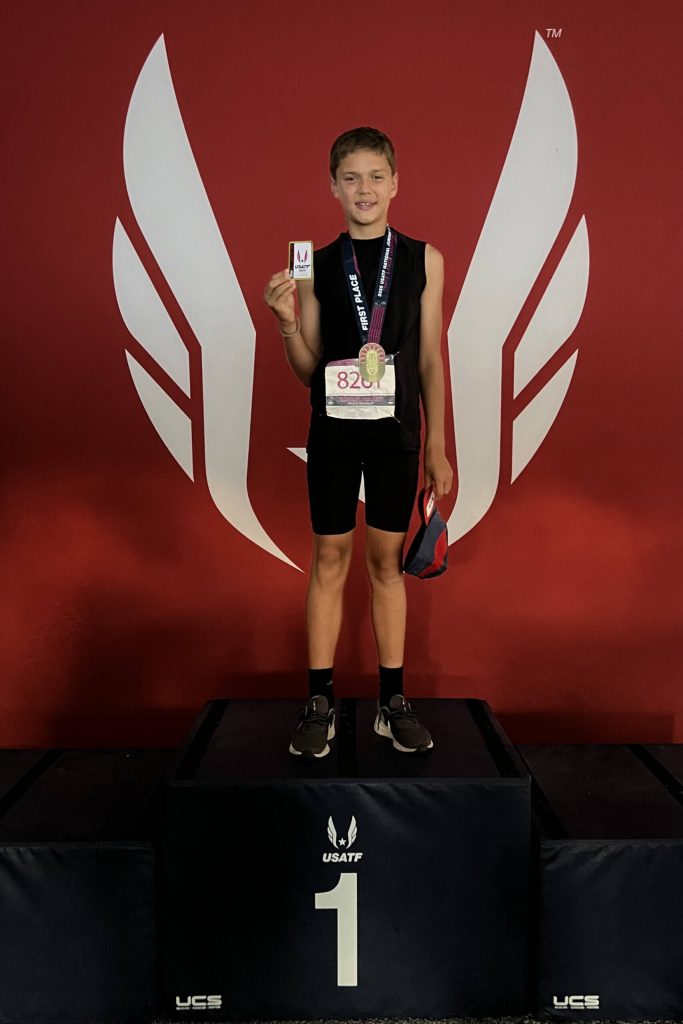 Competing in the Boys 11-12 division, Fry won a national title in the long jump with a distance of 1.58 meters (5 feet, 2.25 inches), a new personal best and 0.05 meters ahead of Shore Athletic’s Max Piotrowski.