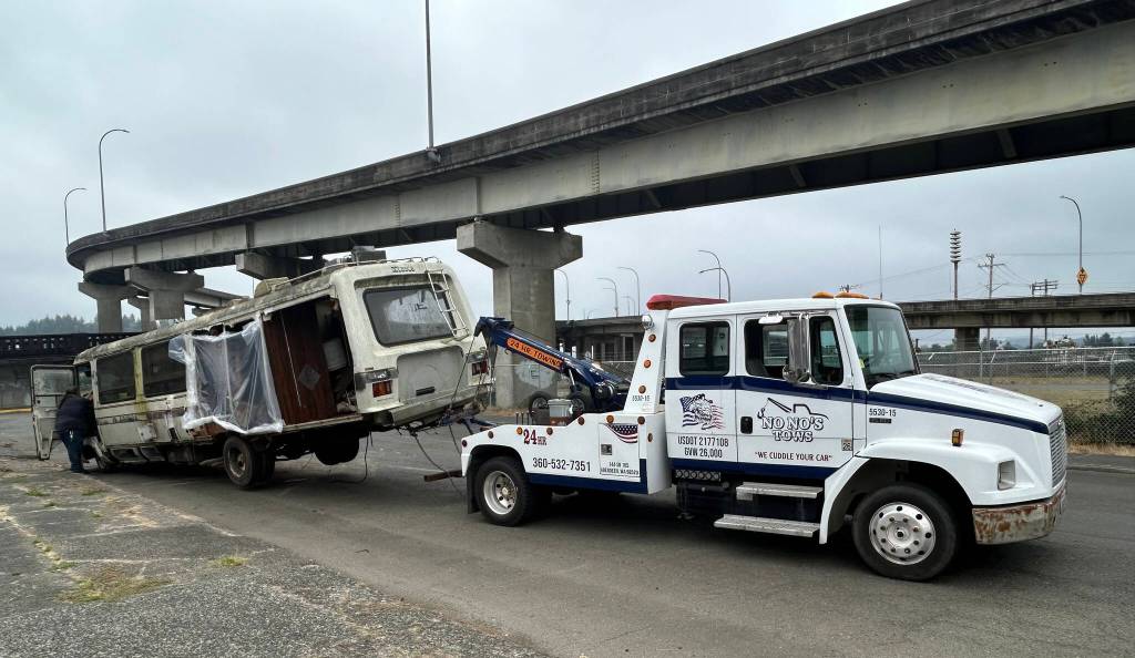 When officers arrived, they discovered a dilapidated 34-foot motorhome parked in the right lane with nobody around. The motorhome was stripped of its license plates and VIN numbers.