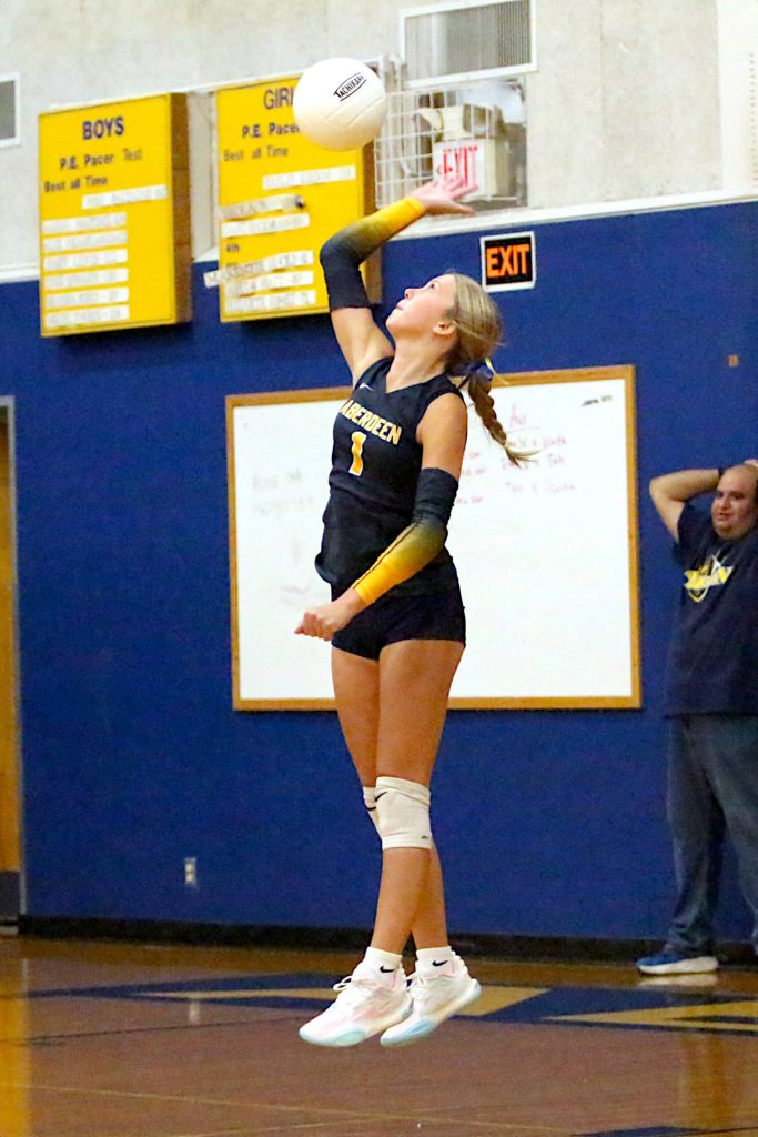 Hallak had five aces and a game-high 21 assists while Aberdeen freshman Emelia Kohn added six aces, six kills and went a perfect 12 for 12 from the service line.