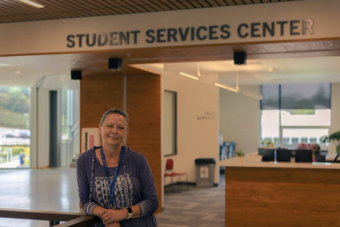 Shelly Hoffman outside of Grays Harbor College’s Student Services Center.
