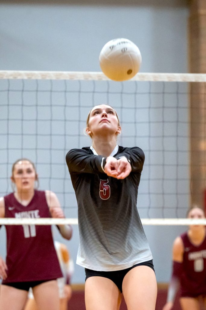 Game 2 was close through the first 30 points of play until Raymond-South Bend took advantage of some Monte mistakes to gain some separation. The Ravens took a 19-13 lead on a block by senior middle blocker Ava Baugher and eventually won the set 25-18 on a kill by senior Kassie Koski.
