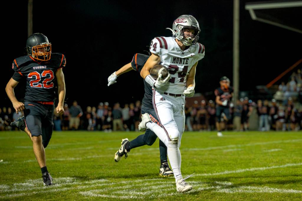 A 21-yard touchdown run by senior Zach Timmons put Monte up 14-0 after one quarter followed by three second-quarter scores – two on 20-plus yard touchdown passes from senior quarterback Tyson Perry sandwiched around Timmons’ second scoring run of the game – to take a commanding 35-0 lead at halftime.