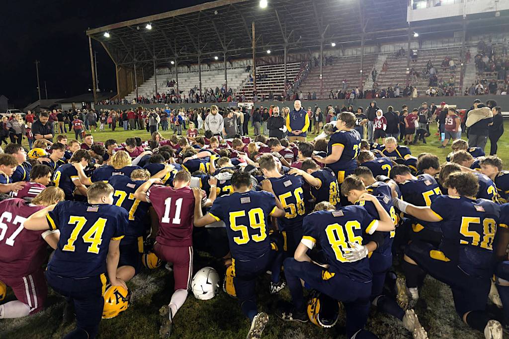 “It was a great moment,” Bridge said. “It was initiated by (Aberdeen offensive coordinator) Macoy Gronseth. I think he thinks of everything. I thought, ‘Let’s do this right. Jack’s going to go out there and talk to the boys in the huddle.’ I don’t think there was a dry eye on our sidelines. The kid’s been playing his guts out now with no ACL. But he wanted to play.”