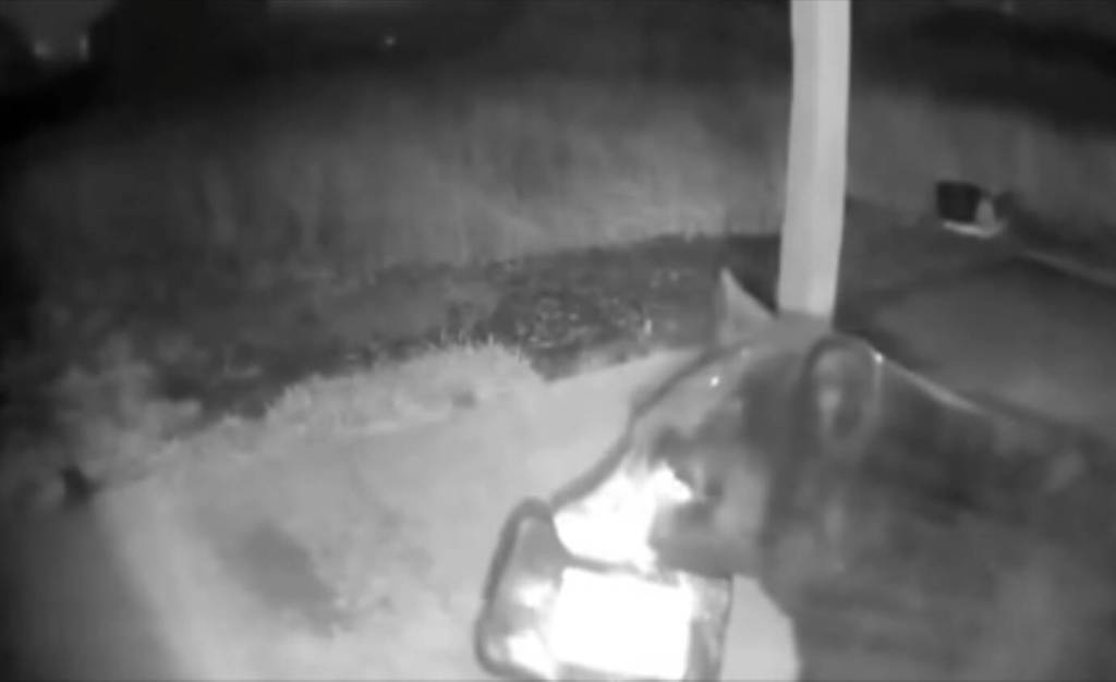 Public-submitted video showing a black bear walking off an Ocean Shores porch with a package in its mouth.
