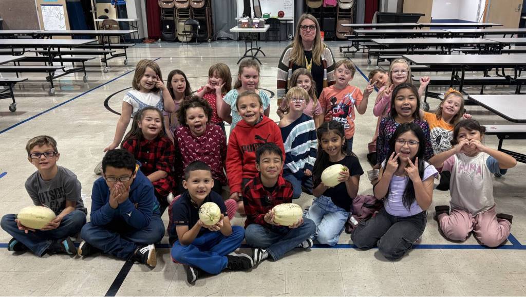Jessica Nelson’s second-grade class at A.J. West Elementary School grew spaghetti squash using seeds that were saved from squash served during last year’s Fresh Fruit and Vegetable Program (FFVP).