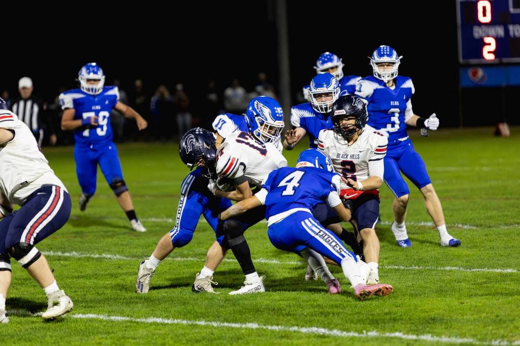 Black Hills had 508 yards – 443 of those on the ground – and had 21 first downs to 12 for Elma.
