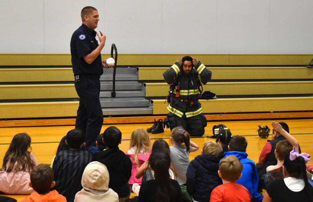 On Tuesday, AFD’s Mitch Housden and two colleagues paid a visit to Robert Gray Elementary and taught students basic fire safety tips through instruction and interactivity, and a demonstration of the gear firefighters wear.