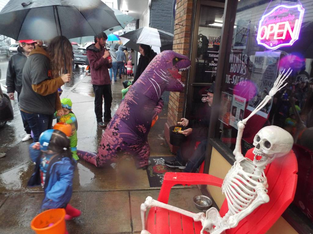 The forecast of rain for Friday afternoon arrived on schedule, resulting in a soggy afternoon for Montesano’s Downtown Trick or Treat and Elma’s Halloween Fall Fest, events sponsored by the respective city’s Chamber of Commerce.
