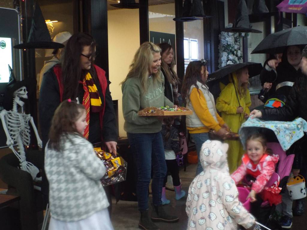 For many trick or treaters, umbrellas, rain boots and rain jackets complemented their costumes of superheroes, Nintendo characters, Disney characters and dinosaurs.