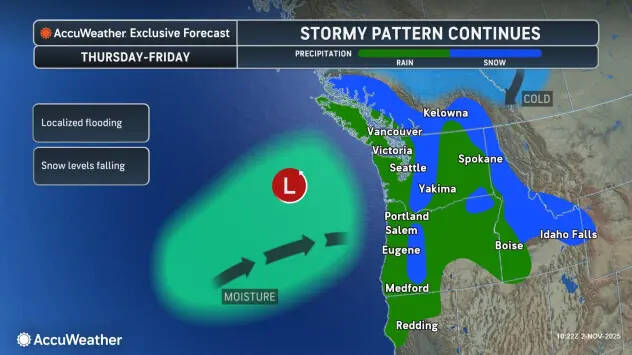 Waves of rain will soak locations along the West Coast this week as numerous storms pulse across the region, AccuWeather forecasters warn, with no notable end in sight through mid-November.