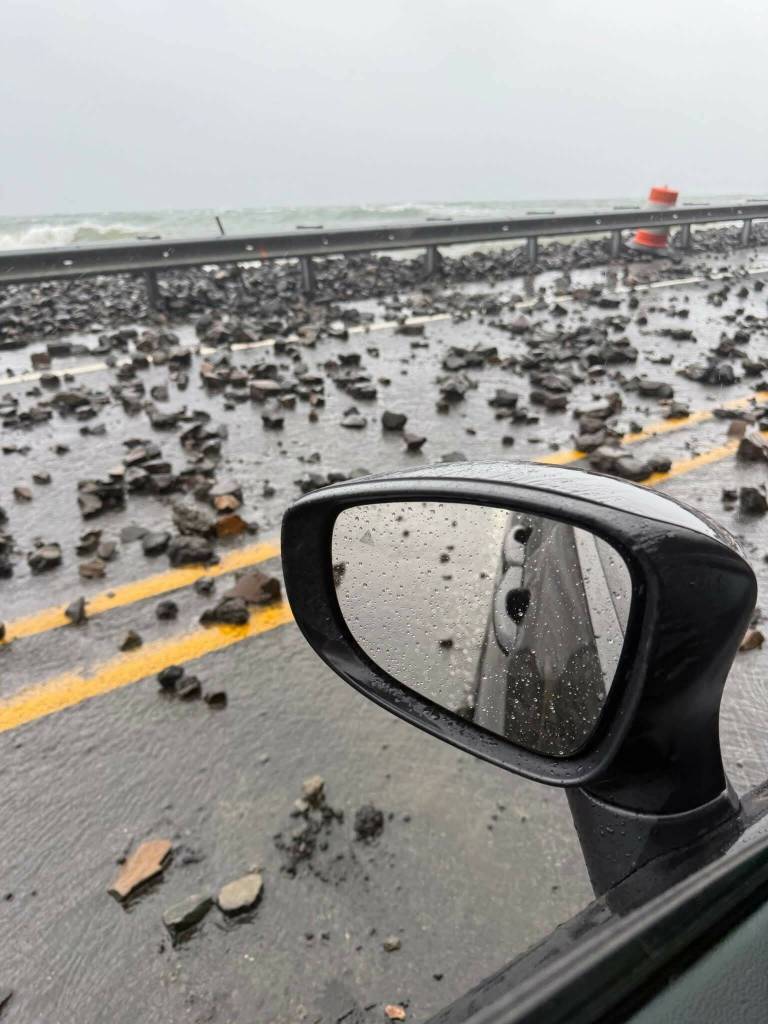 The storm that blew through Grays Harbor the past few days included strong winds, torrential rain, lightning, uprooted trees, coastal flooding exasperated by king tides, tornado warnings, rocks being swept over roadways along the coast, power outages and even a sea lion seen parked on the Blue Slough Road just a few miles southeast of Cosmopolis and not far from the Chehalis River.