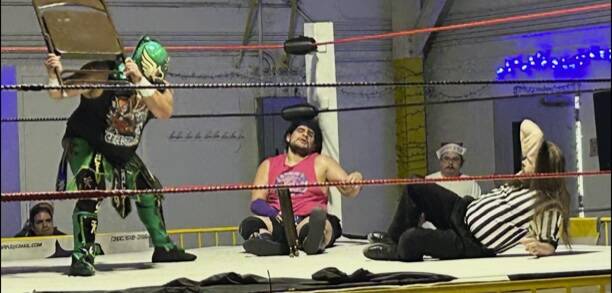 In a jarring match between two 250 pounders, Celestial and Pascal Penguino, the pair performed strong and physical moves more than tactical finesse with much of their match outside of the ropes right in front of the crowd. Penguino won by disqualification after Celestial used a metal folding chair to hit the referee and then Penguino.