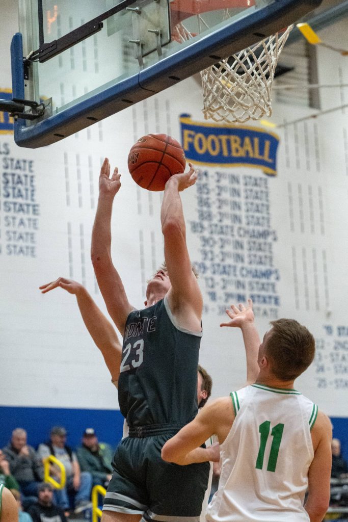 PHOTO BY FOREST WORGUM Montesano’s Caden Grubb (23) scored 22 points in a loss to Tumwater on Tuesday at the Adna Holiday Tournament in Adna.