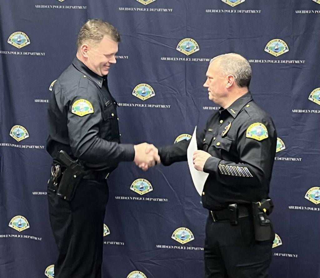Aberdeen Chief of Police Dale Green formally promoted Gary Sexton to the rank of lieutenant, and Noah Ewing and Nathan Nussbaum to the rank of sergeant.