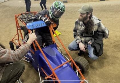 Aberdeen eight-year-old Hunter Buchanan and his step-dad, Merrick Munger-Scharff, had been looking forward to this winter’s opportunity to drive one of the quarter midget cars and it didn’t disappoint the pair. Munger-Scharff is a classic car enthusiast with a ‘79 El Camino and young Hunter was just wishing to get in the midget racer to see what it was like.