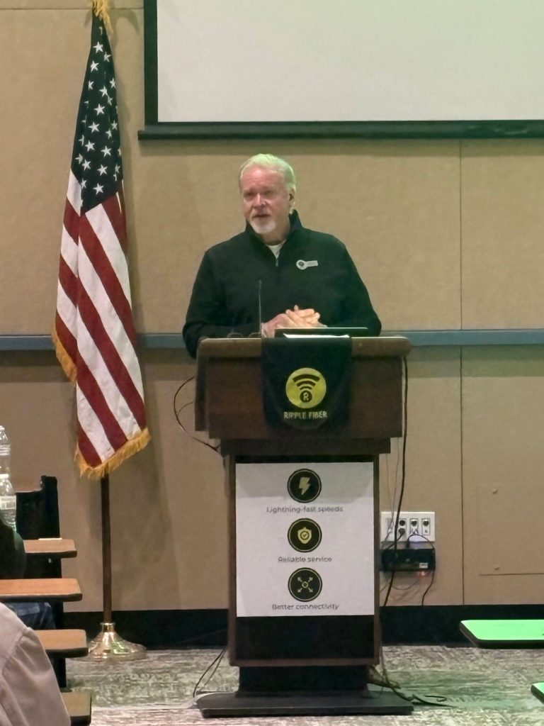 In May 2025, HyperFiber announced a merger with Ripple Fiber, which was completed in early September. Kennedy moved over and is now executive chairman of Ripple Fiber. Then-Washington Market Manager for HyperFiber Lorie Hills, who introduced HyperFiber to Ocean Shores city leaders and attended the March 2025 town hall, is now a regional executive with Ripple Fiber and was also in attendance along with Community Liaison Michael Buchanan and other Ripple Fiber staff Tuesday night.