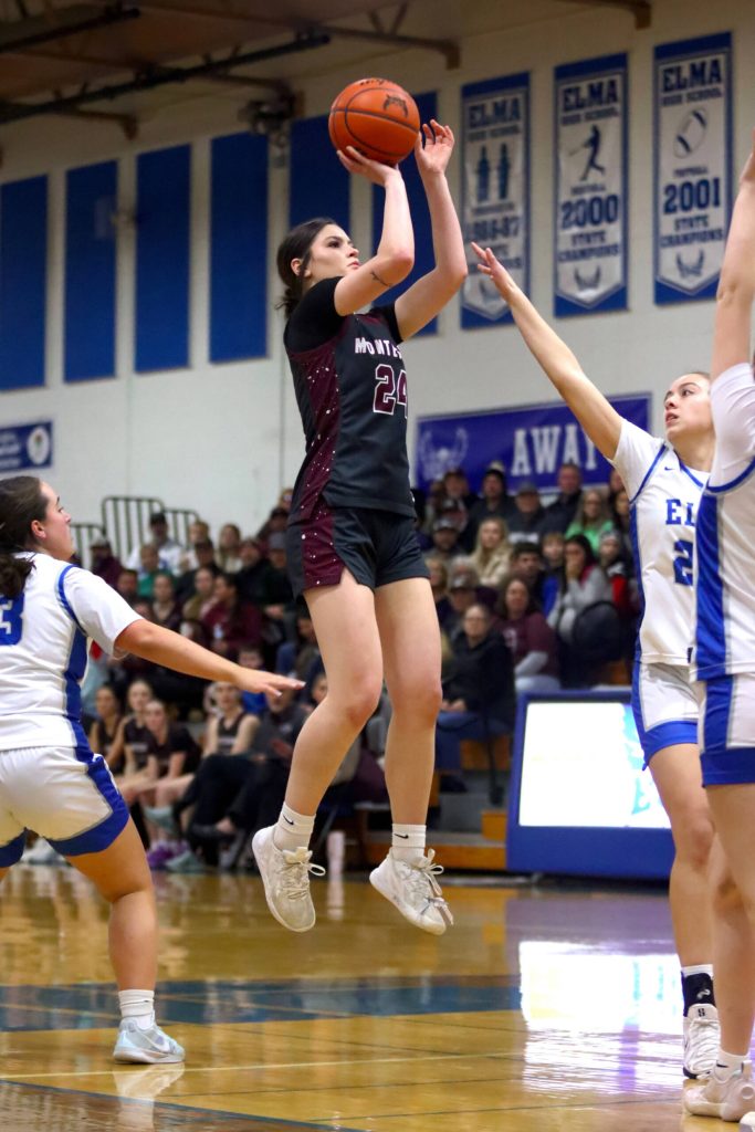 Monte led 23-14 at halftime and led by as much as 14 points in the game but saw Elma cut the lead to 31-30 entering the fourth quarter, thanks to six points on two three’s from sophomore Mikayla Roberts and five points from junior guard Kahlea Tolentino in the third frame.