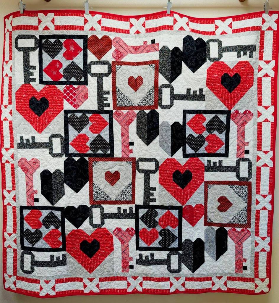 For the month of February, the Sea Pal Quilting group is displaying this beautiful quilt called “My Valentine” in Ocean Shore Library’s meeting room 2. This quilt is pieced by Judy Link and quilted by Jane Adams.