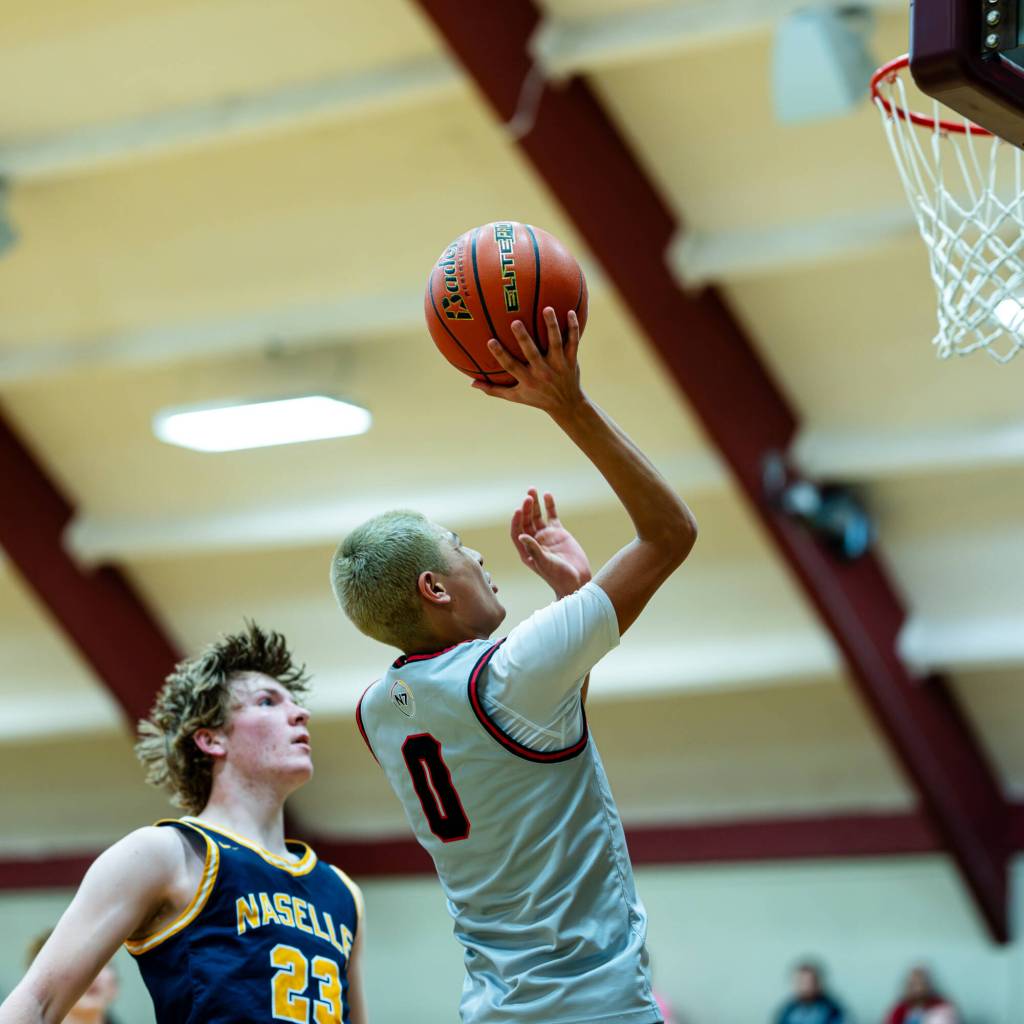 PHOTO BY MATT RUMBLES Taholah eighth-grader Hunter Crossguns (0), seen here in a file photo from Feb. 20, was named to the 1B Coastal League’s First Team for the 2025-26 season.