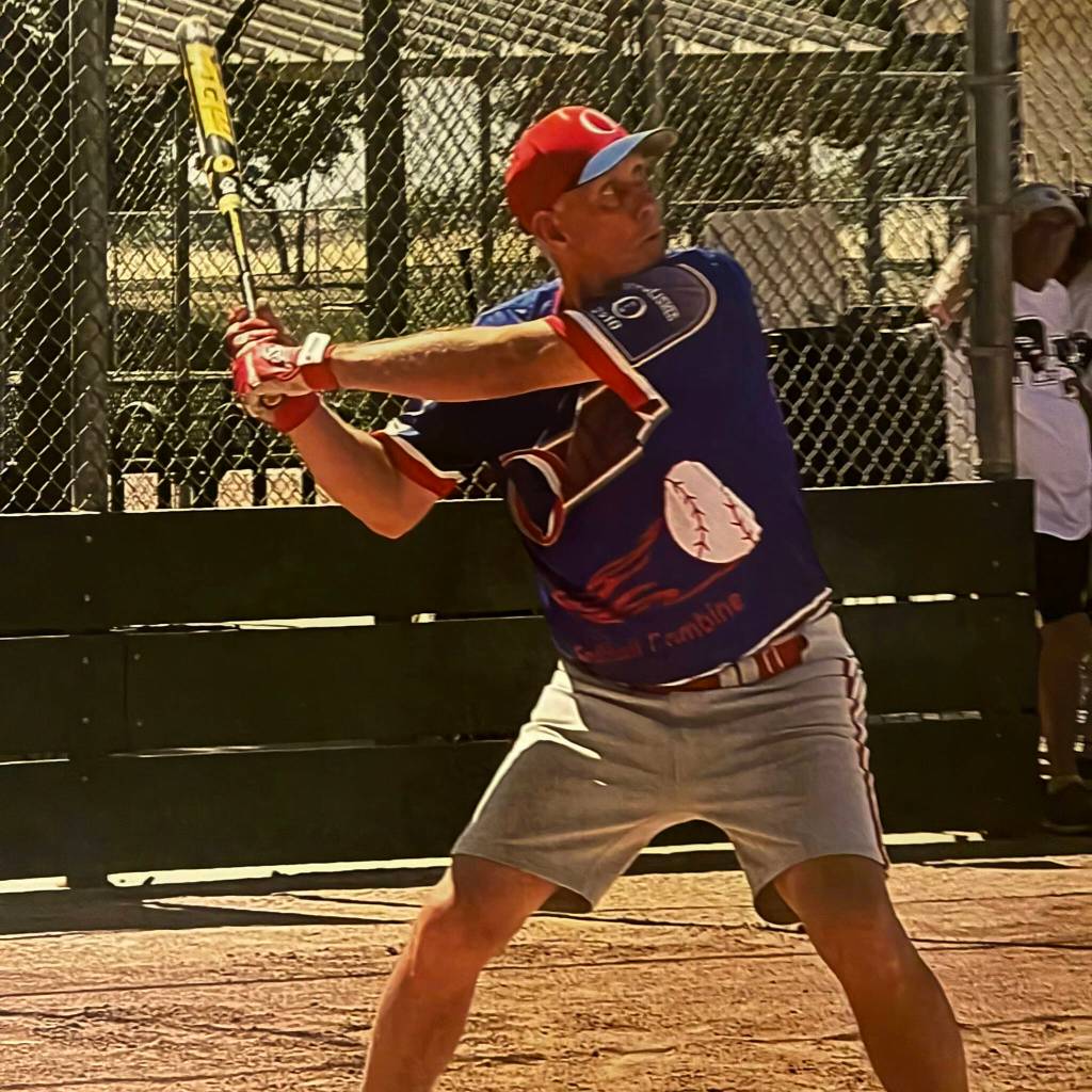 Usually sporting a batting average between .750 and .800, Ross remains productive in the high-scoring world of senior slow-pitch. His team roles, however, have been altered somewhat.