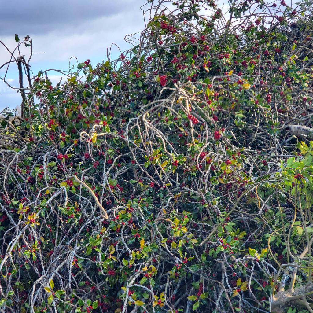 English holly trees have extensive root systems, which make them difficult to kill even after being cut down. This holly tree had been cut down some years earlier and resprouted from the base.