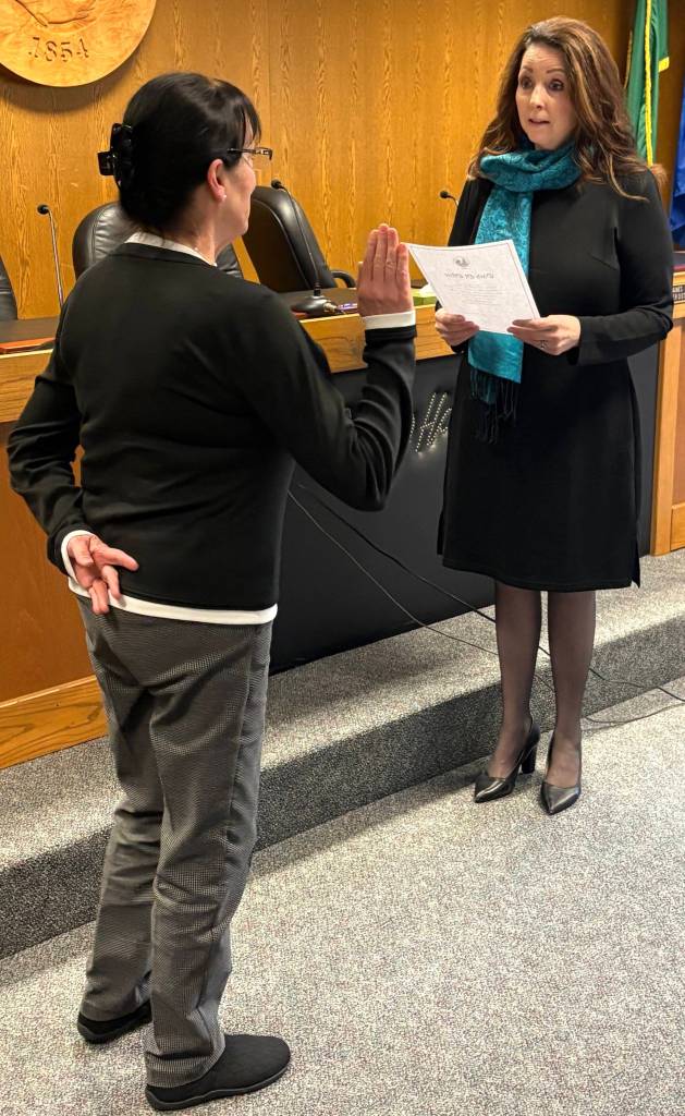 The three newly appointed commissioners for the recently created Ocean City Drainage District — Stan Sturgeon, Michelle Wiley and Jon Schleiger — were sworn in on Thursday, Feb. 26 in the Grays Harbor Board of County Commissioners meeting room at the County administration building in Montesano. District 3 Commissioner and one of the biggest proponents of the creation of the drainage district Vickie Raines administered the oath of office for the trio.