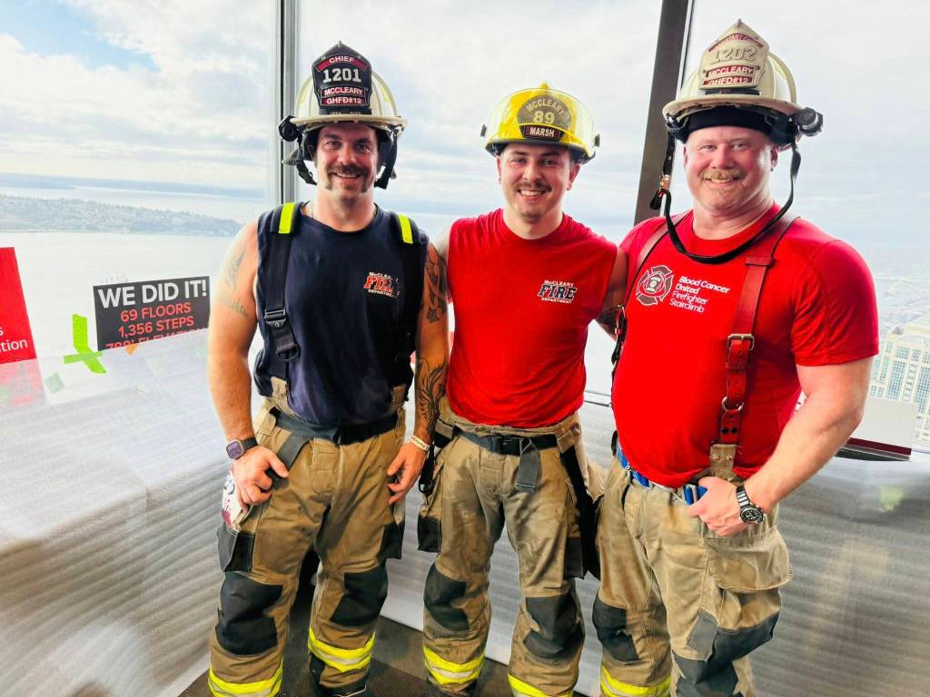 On March 7, Grays Harbor County fire departments participated in the 35th Anniversary Firefighter Stairclimb hosted by Blood Cancer United, formerly known as the Leukemia & Lymphoma Society. The stairclimb was held at the Columbia Center in Seattle. While climbing the 69 flights and 1,356 steps, participants wore full turnout gear and breathing apparatus. In all, 317 departments, 29 states and three countries participated this year.