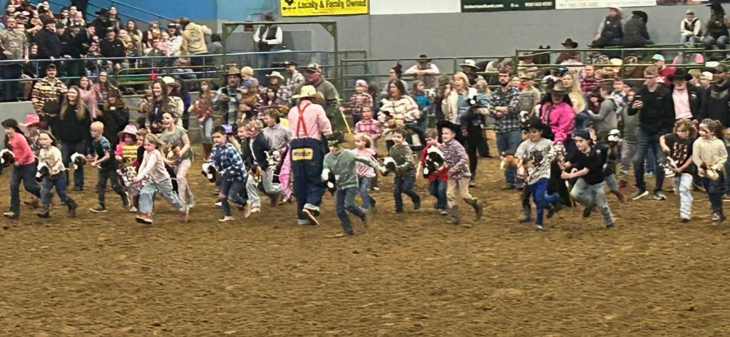 Perhaps the biggest event on the docket for Sunday was the kids’ stick horse race. Four age divisions of 3 and under, 4 to 5, 6 to 7 and 8 to 10 years of age raced through the dirt from one end of the arena to the other with their stick horses. Winners of each division received awards and over 200 children participated in the crowd pleasing contest.