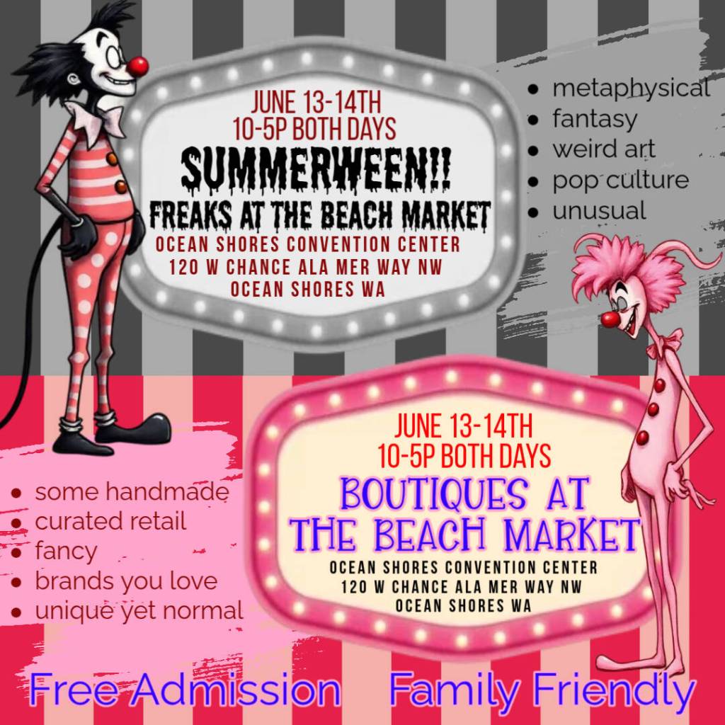The next Freaks at the Beach Market is set for June 13-14. Summerween 2026 and 2026 Summer Boutiques at the Beach Market are both coming to the Ocean Shores Convention Center located at 120 W Chance a la Mer.