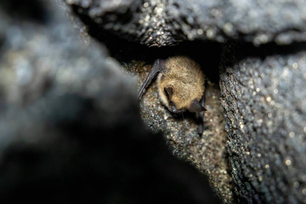 If you’ve ever wondered where bats go in winter, we’ll give you a hint: they like a good chill hang. Many of our native species spend the colder months tucked away, hanging from the ceilings and walls of caves and lava tubes. These underground spaces provide the stable conditions bats need to survive until insects return.
