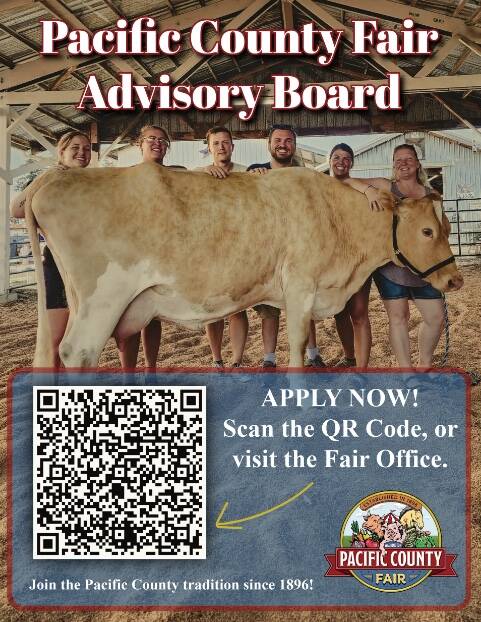 The Pacific County Fair is seeking applications for appointment to positions on the Fair Advisory Board. The Fair Advisory Board is responsible for assisting in developing rules and regulations to govern the orderly conduct of the annual Pacific County Fair, engage in long-term planning for Fair programs and facilities, and acts as an Advisory Board to the County Commissioners.