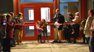 After nearly a year of construction, dozens of families gathered around as two children cut the ceremonial ribbon during the formal opening of the new Oakville Elementary School on Wednesday, Nov. 9, in Oakville.