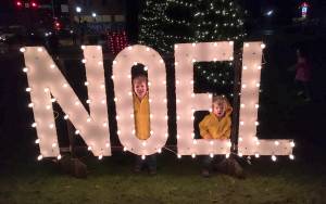 Emmet and Ansel Quigg, sons of David Quigg, peer through the large Noel sign that was lit up along with the Christmas tree on the first day of the 2016 Aberdeen Winterfest. This year there will be two tree lightings - one Dec. 1 in Zelasko Park, and another at the Grays Harbor Historical Seaport Dec. 2.